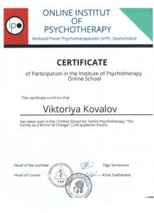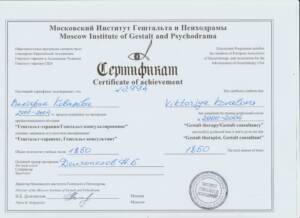 • Образование Московский институт гештальта по стандартам Европейской Ассоциации гештальт-терапии и Ассоциации гештальт-терапии США. Педагогический институт – Педагог-психолог (научная и учебно-методическая деятельность в сфере психологии).